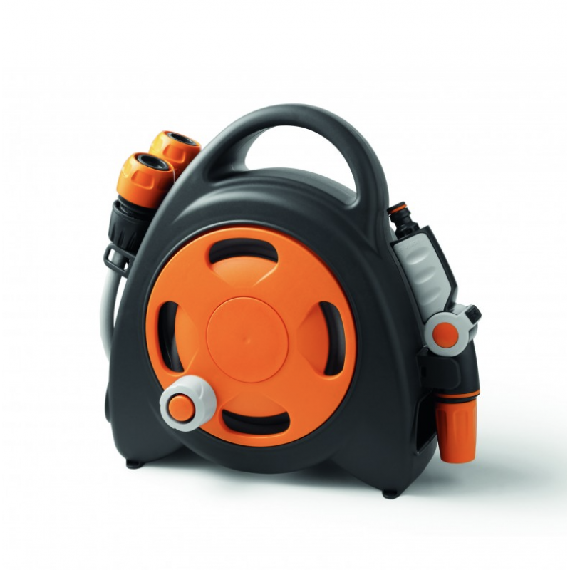 Con 11,5 mts de manguera flexible y trenzada, 2 racores automáticos, pistola de caudal variable "3 Jet", toma de grifo de 3/4" indoor.outdoor (incluso grifos interiores, cocina, baño, lavadero).